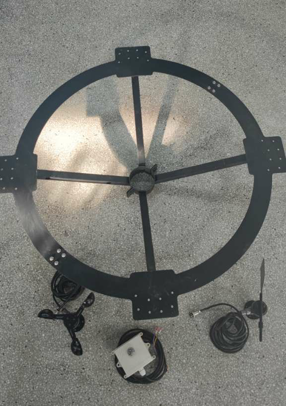 1、傳感器固定:圓盤正前方固定光照傳感器,左右兩側(cè)固定風(fēng)速、風(fēng)向傳感器