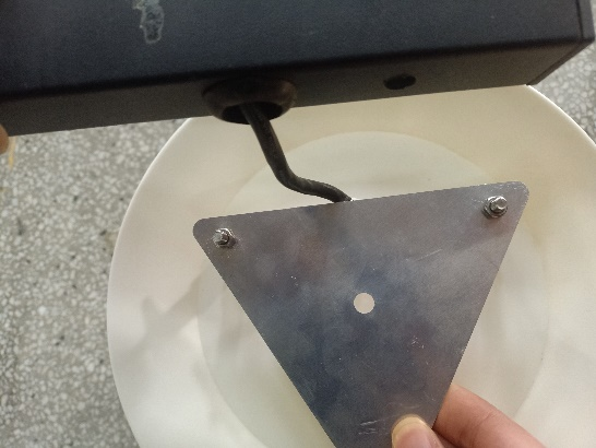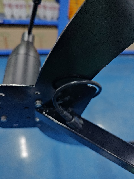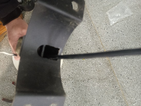 13、安裝固定圓盤支架并穿線,先將圓盤支架中間四個(gè)螺絲拆卸,然后將圓盤支架從燈桿上方套到燈桿上,光照傳感器朝向控制箱方向,將傳感器線從對(duì)應(yīng)的進(jìn)線孔(距燈桿頂端1m)穿進(jìn)燈桿,從控制箱的出線孔(離燈桿底座1.2m)穿出燈桿,最后將圓盤支架4個(gè)穿線孔與燈桿的4個(gè)進(jìn)線孔對(duì)齊,固定4個(gè)螺絲并擰緊,注意不要壓到線